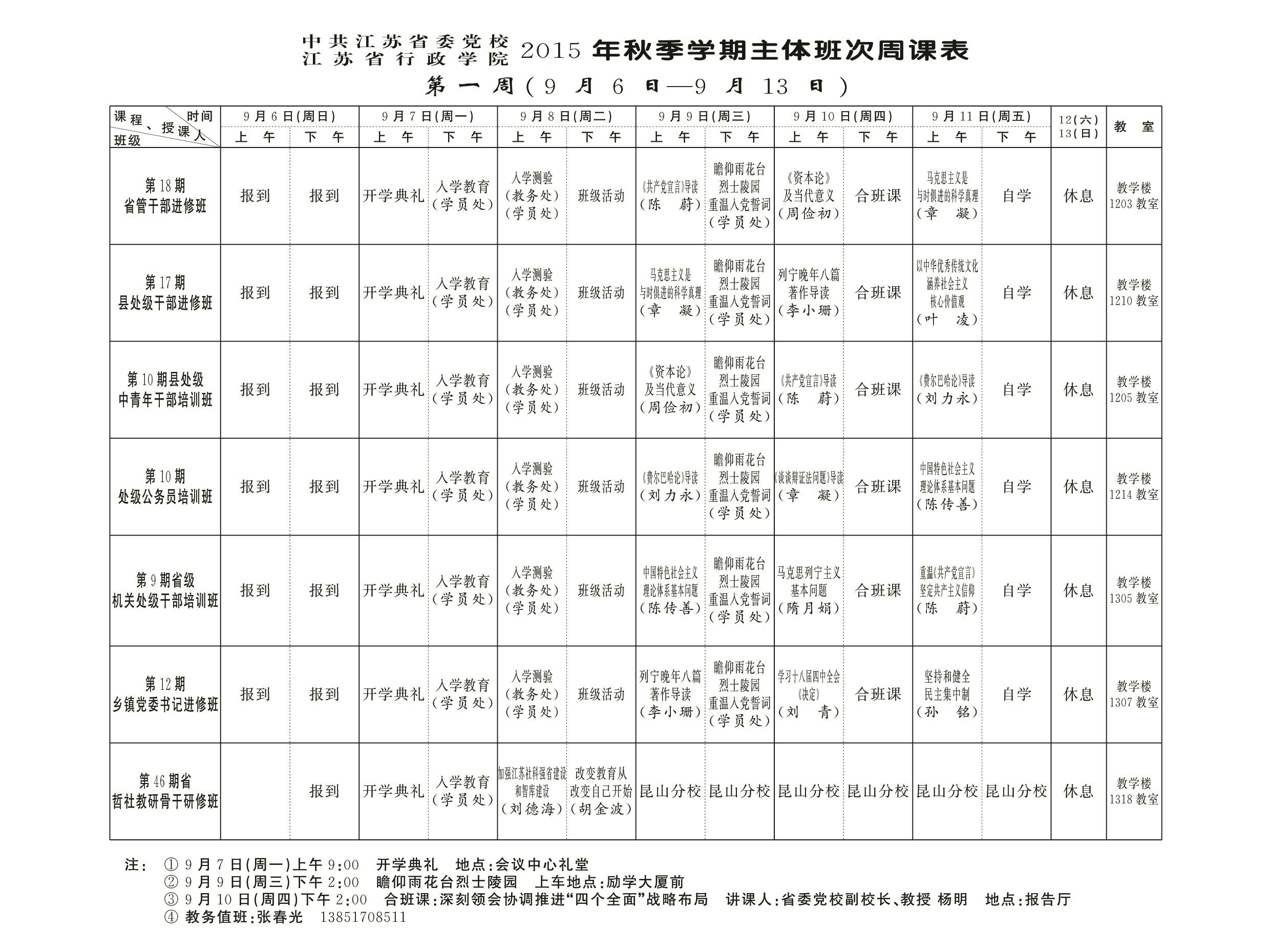 江苏省委党校2015年春季学期主体班次第三周教学安排